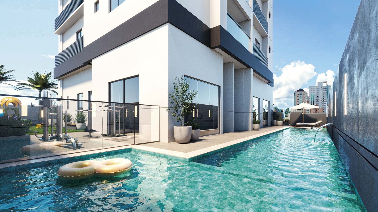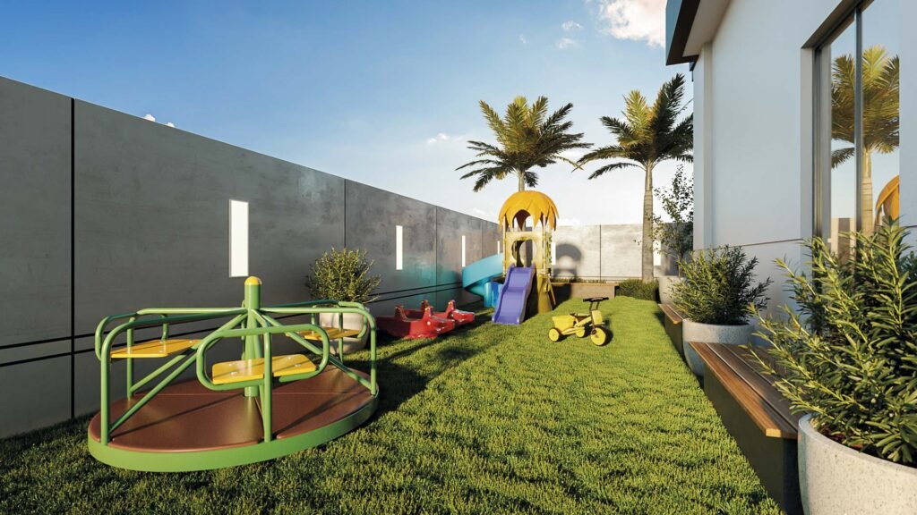 • Piscina adulto e infantil + espelho d’água; • Academia com área interna e externa; • Brinquedoteca; • Playground; • Pracinha; • Espaço relax externo com gazebo; • Salão de festas; • Fire Place; • Espaço gourmet com sala de jogos; • Academia; • Bicicletário no térreo; • Coworking diferenciado com 120m2, espaço para cafeteria, sala de reuniões e sacada.